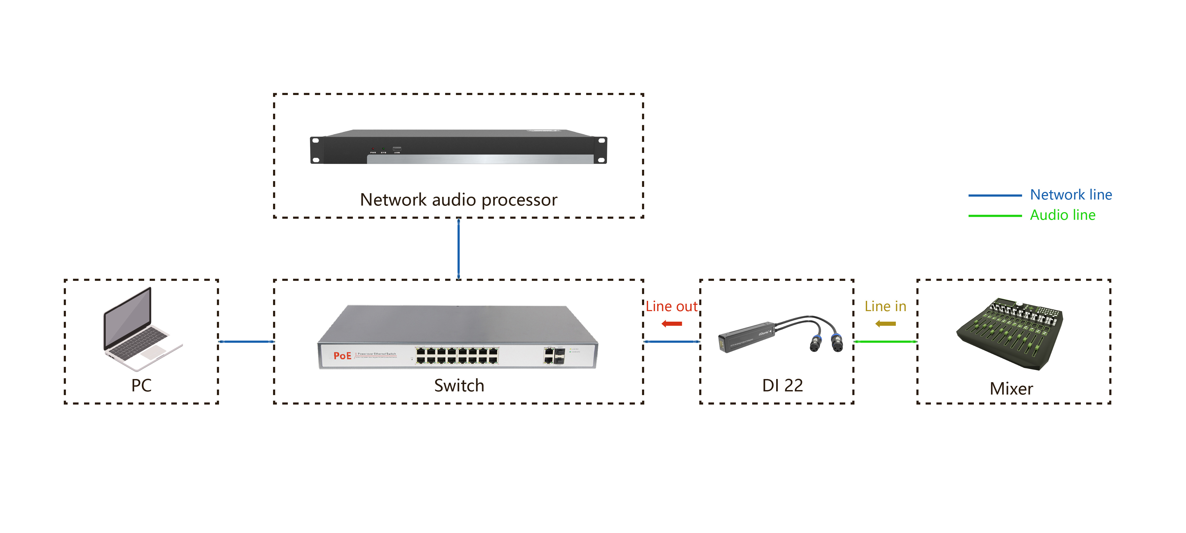 FHBAVTEC® Dante 2 CH Analog Input Adapter(DI22) is suitable for meeting room, exhibition hall, small activities, classroom interaction and other occasions.